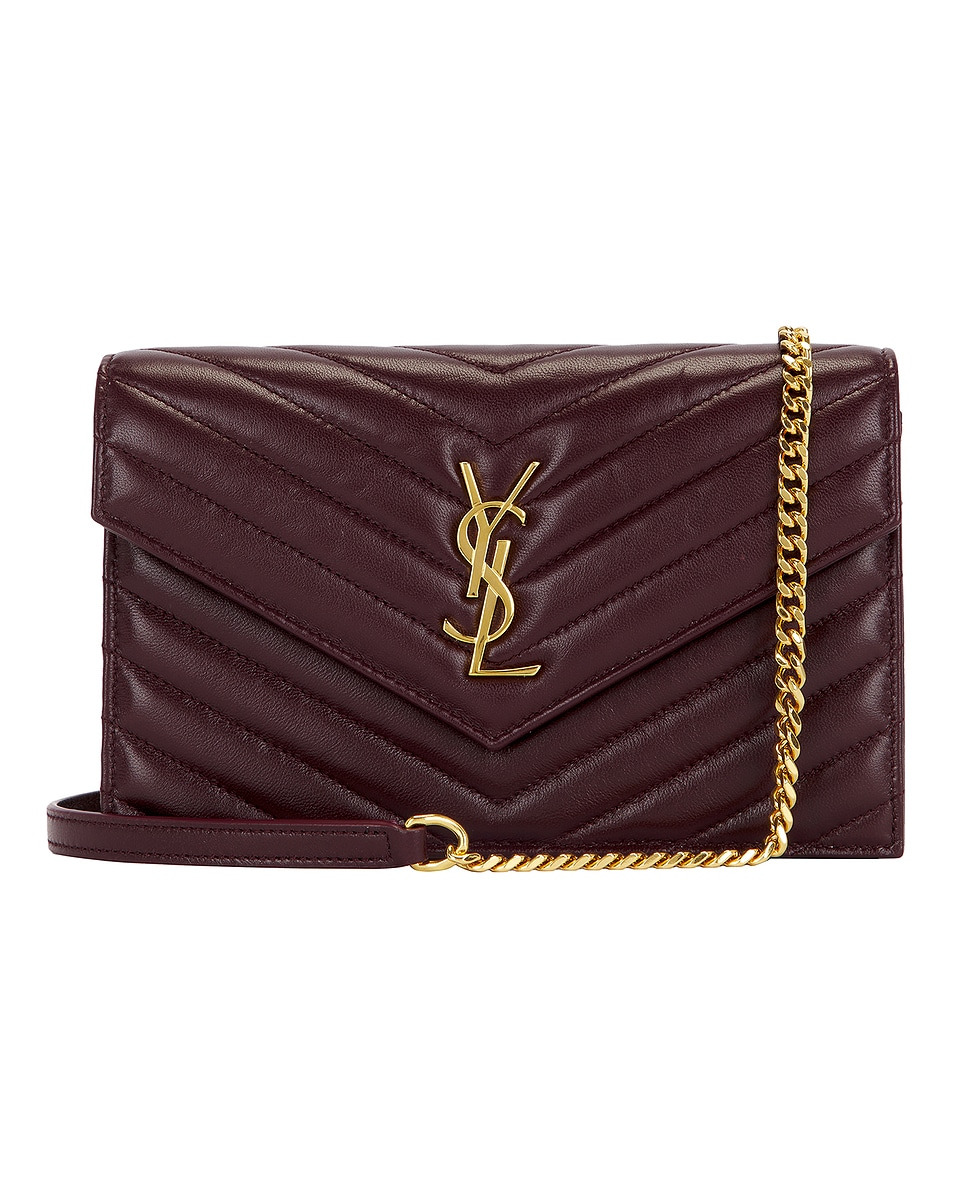 Details - Leather exterior and lining - Flap top with snap button closure - Gold-tone metal YSL hardware at front - One main compartment - Six card slots with one bill slot - One zipper pocket - Detachable gold-tone chain shoulder strap with leather reinforcement - Measures approx 19 cm W x 10 cm H x 4 cm D - Shoulder strap with a 56 cm drop - This item is not available to ship to Indonesia - Made in Italy - Our Style No. SLAU-WY3187 - Manufacturer Style No. 742920-AAA44-6195