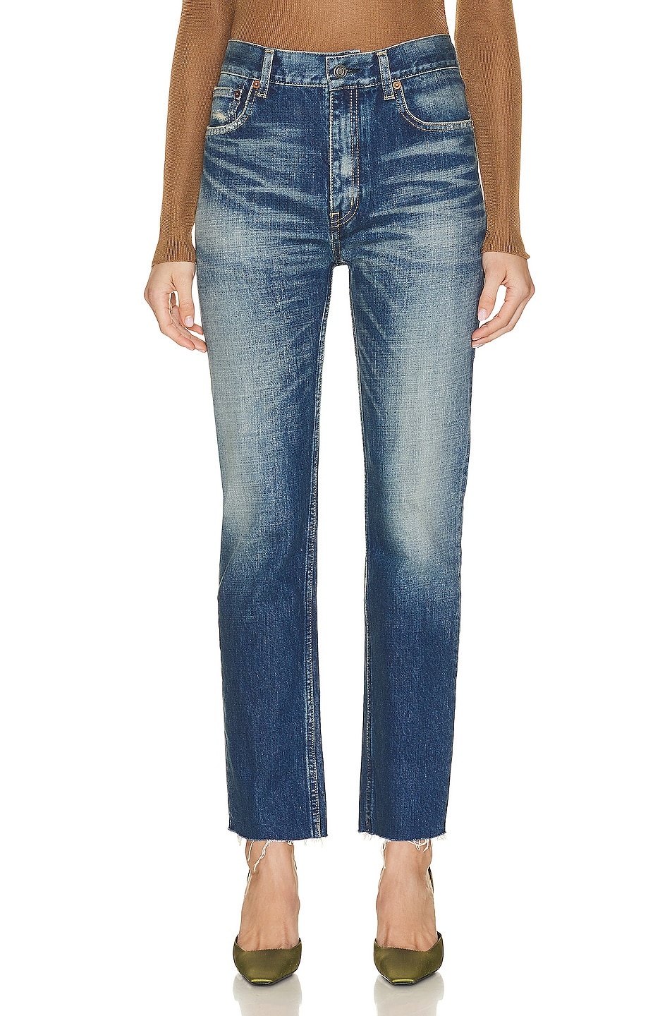 Details - 100% cotton - Made in Japan - Machine wash - Zip fly with button closure - 5-pocket design - Heavy whiskering and fading detail - Frayed raw-cut hem - This item is not available to ship to Indonesia - Our Style No. SLAU-WJ43 - Manufacturer Style No. 734311Y07HA