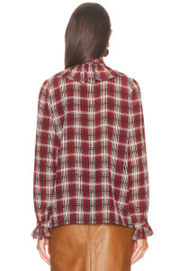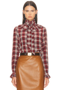 Details - 100% silk - Dry clean only - Front partial button closure with tie-up accent at collar - Buttoned cuffs with ruffle design - Satin crepe fabric - This item is not available to ship to Indonesia - Made in Italy - Our Style No. SLAU-WS468 - Manufacturer Style No. 839835-Y3J75-6932