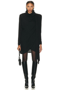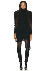 Details - Self: 100% wool - Trim: 98% wool, 1% elastane, 1% polyamide - Made in Italy - Dry clean only - Unlined - Pull-on styling - Turtleneck styling - Padded shoulders with draped fabric detail - Lightweight knit fabric with surplice hem - This item is not available to ship to Indonesia - Our Style No. SLAU-WD253 - Manufacturer Style No. 751695-Y75SW-1000