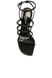 Details - Satin fabric upper leather sole - Made in Italy - Ankle buckle closure - Strappy design with crystal embellished buckle detail at vamp - Angled square toe - Stiletto heel - Approx 115mm/ 4.5 inch heel - This item is not available to ship to Indonesia - Our Style No. SLAU-WZ1058 - Manufacturer Style No. 742235-1UU00-1000