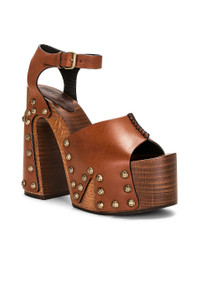 joan platform sandals in smooth leather and wood
