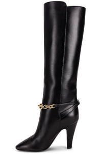 Details - Calfskin leather upper and sole - Made in Italy - Leather insole - Pull-on styling - Gold-tone chain buckle strap at ankle - Pointed toe - Approx 95mm/ 3.75 inch heel - Approx 368mm/ 14.5 inch shaft - This item is not available to ship to Indonesia - Our Style No. SLAU-WZ854 - Manufacturer Style No. 670254-2W700-1000