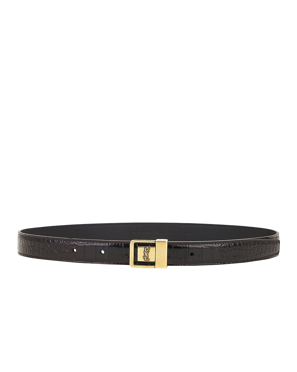 Details - Croc-embossed leather with gold-tone Cassandre buckle - Made in Italy - Pushpin closure - Size 65 measures approx 56 cm-66 cm L x 2 cm H - This item is not available to ship to Indonesia - Our Style No. SLAU-WA368 - Manufacturer Style No. 777966-AAAOZ-2053