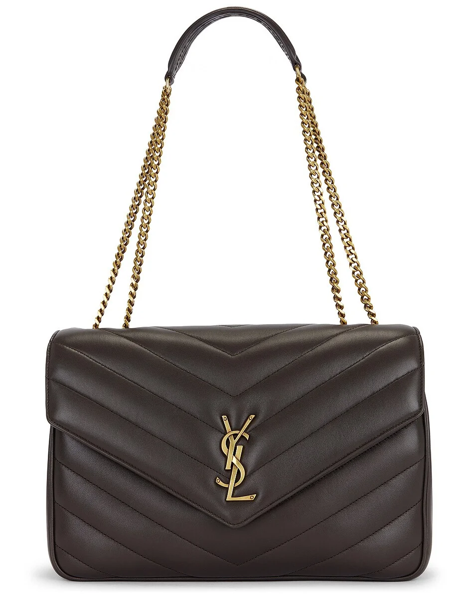Details - Calfskin leather exterior with grosgrain lining - Flap top with magnetic snap closure - One main compartment - Zip pocket with two internal flat pockets - Sliding chain and leather shoulder strap can be worn single or doubled - Antique silver-tone hardware - Chevron quilted design - Measures approx 14" W x 10" H x 5" D - Shoulder strap with a 19" drop when worn single - Shoulder strap with a 10" drop when worn doubled - This item is not available to ship to Indonesia - Made in Italy - Our Style No. SLAU-WY3275 - Manufacturer Style No. 803541-AAEAX-1997
