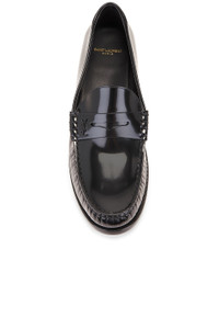 Details - Patent leather upper with leather sole - Made in Italy - Slip-on styling - Moccasin stitching detail on vamp - Side tonal YSL initials - Rubber tap heel - Approx 25mm/ 1 inch heel - This item is not available to ship to Indonesia - Our Style No. SLAU-MZ190 - Manufacturer Style No. 670231-AAA7R-1000