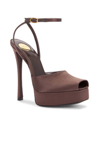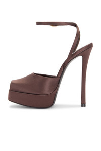 Details - Satin upper with leather sole - Made in Italy - Adjustable ankle buckle closure - Leather lining - Open square toe - Stiletto heel - Approx 140mm/ 5.5 inch heel - Approx 30mm/ 1.2 inch platform - This item is not available to ship to Indonesia - Our Style No. SLAU-WZ1341 - Manufacturer Style No. 806070-9QNAO-6027