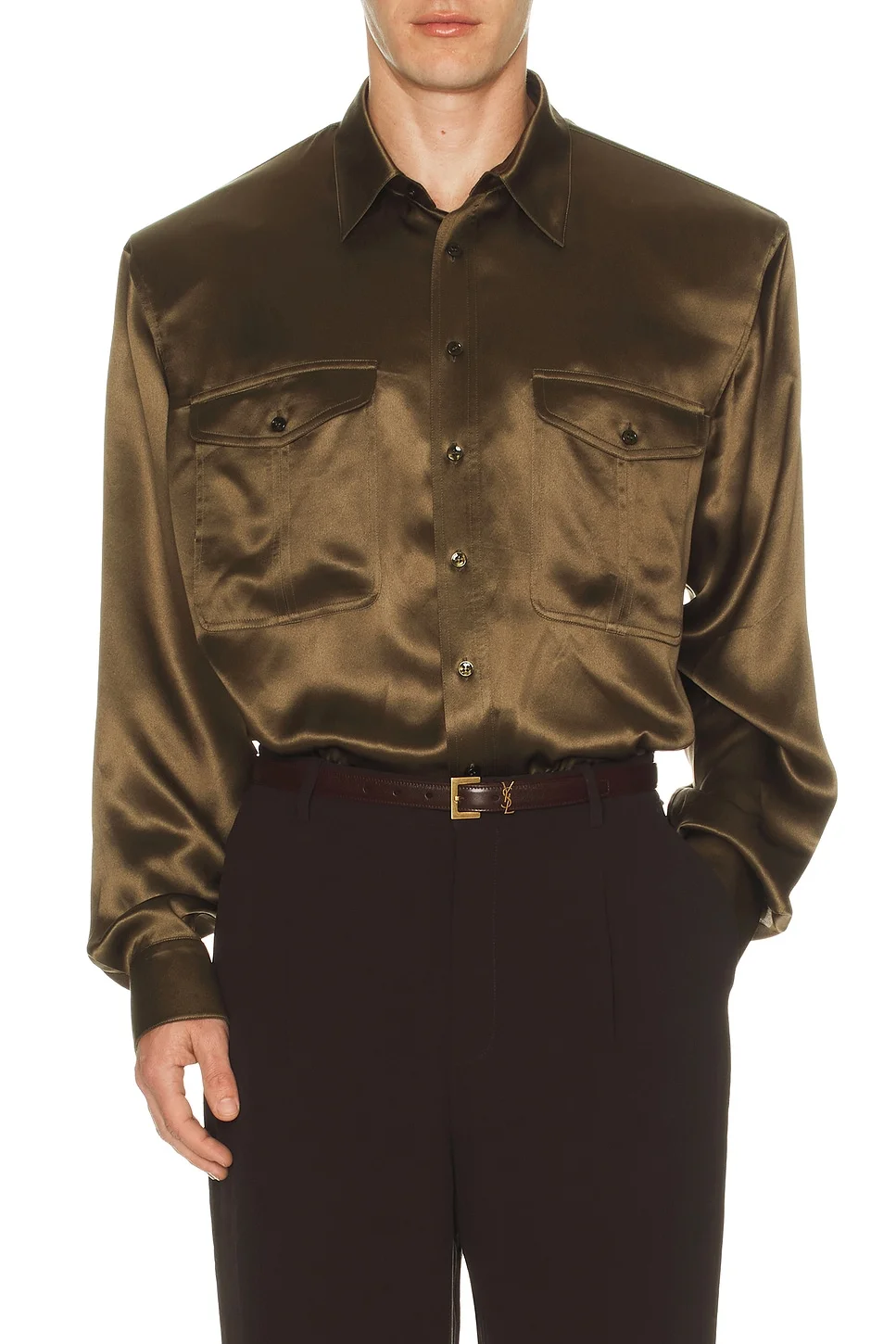 Details - 100% silk - Dry clean only - Front button closure - Dual chest pockets - Buttoned cuffs - Lightweight satin fabric - This item is not available to ship to Indonesia - Made in Italy - Our Style No. SLAU-MS207 - Manufacturer Style No. 854249Y7G271302