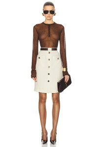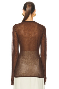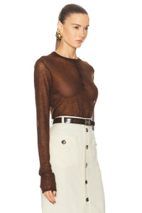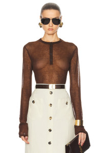 Details - Self 1: 80% lyocell, 20% wool - Self 2: 100% polyester - Made in Italy - Dry clean only - Henley design - Garment is intentionally sheer, undergarments will show through. - This item is not available to ship to Indonesia - Our Style No. SLAU-WS392 - Manufacturer Style No. 792806-Y76OY-2000