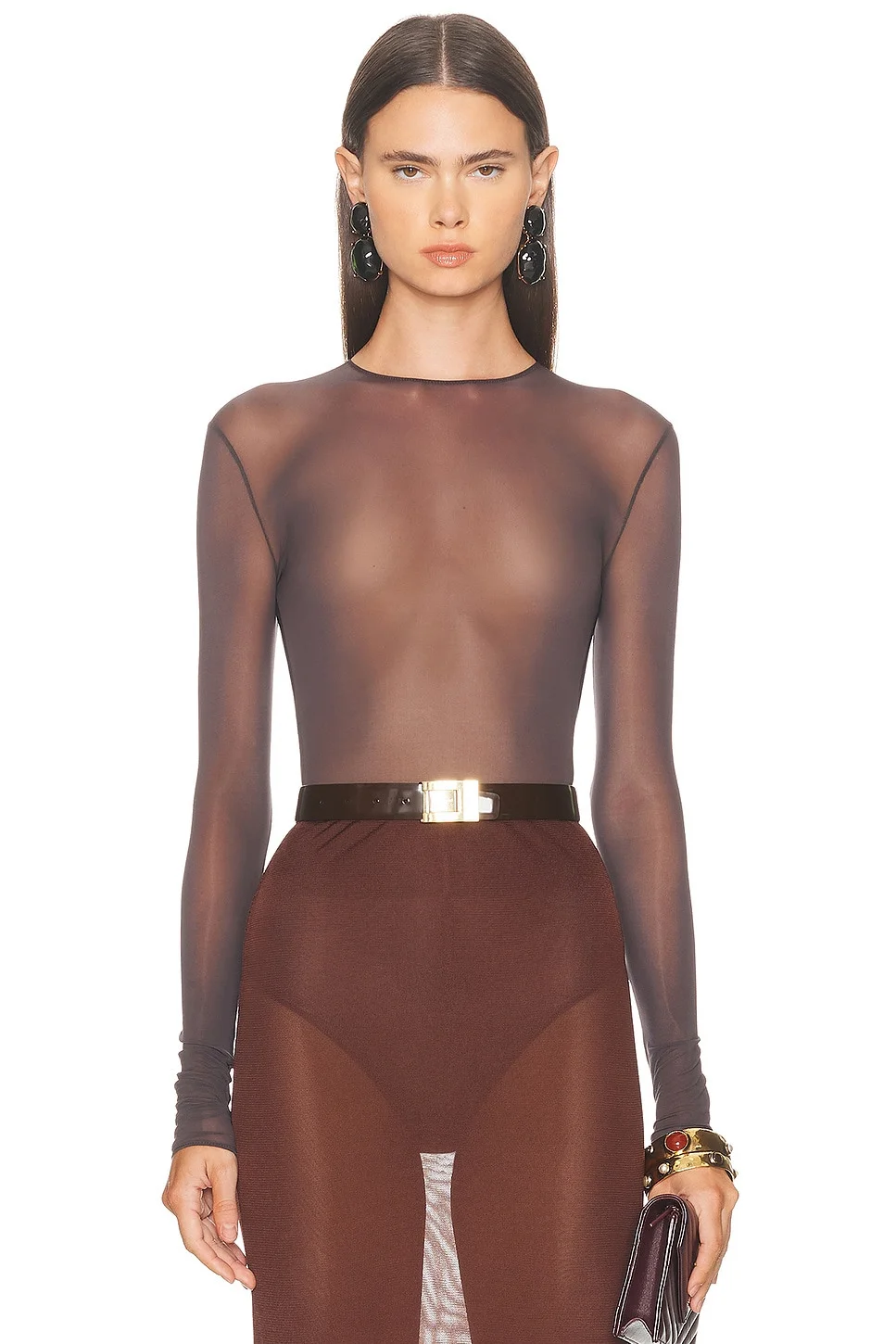 Details - 92% cupro, 8% elastane - Machine wash - Gusset button snap closure - Mesh fabric - Garment is intentionally sheer, undergarments will show through. - Please note undergarment not included - This item is not available to ship to Indonesia - Made in Italy - Our Style No. SLAU-WS470 - Manufacturer Style No. 843789-Y5G89-2179
