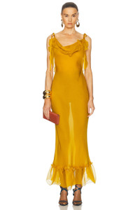 Details - 100% silk - Made in France - Dry clean only - Unlined - Pull-on styling - Tie shoulder straps with draped ruffle neckline - Lightweight silk fabric - Garment is intentionally sheer, undergarments will show through. - This item is not available to ship to Indonesia - Our Style No. SLAU-WD302 - Manufacturer Style No. 822651-Y3F22-7789