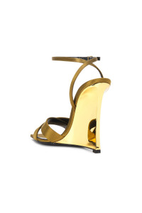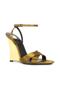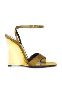 Details - Satin upper with leather sole - Ankle buckle closure - Leather lining - Square toe - Gold-tone wedge heel - Approx 110mm/ 4.15 inch wedge - This item is not available to ship to Indonesia - Made in Italy - Our Style No. SLAU-WZ1458 - Manufacturer Style No. 830287-9QNAO-2309