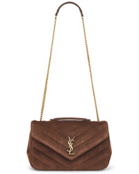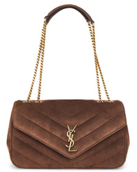 Details - Soft quilted suede exterior - Envelope flap with magnetic snap closure and bronze YSL logo - Two main interior compartments separated by a zip pocket - One interior zip pocket - Adjustable sliding chain and leather shoulder strap that can be doubled - Strap drop can be worn at approximately 26 cm or 48 cm - Measures approx 29 cm W x 21 cm H x 10 cm D - This item is not available to ship to Indonesia - Made in Italy - Our Style No. SLAU-WY3302 - Manufacturer Style No. 801439-AAEY6-2358