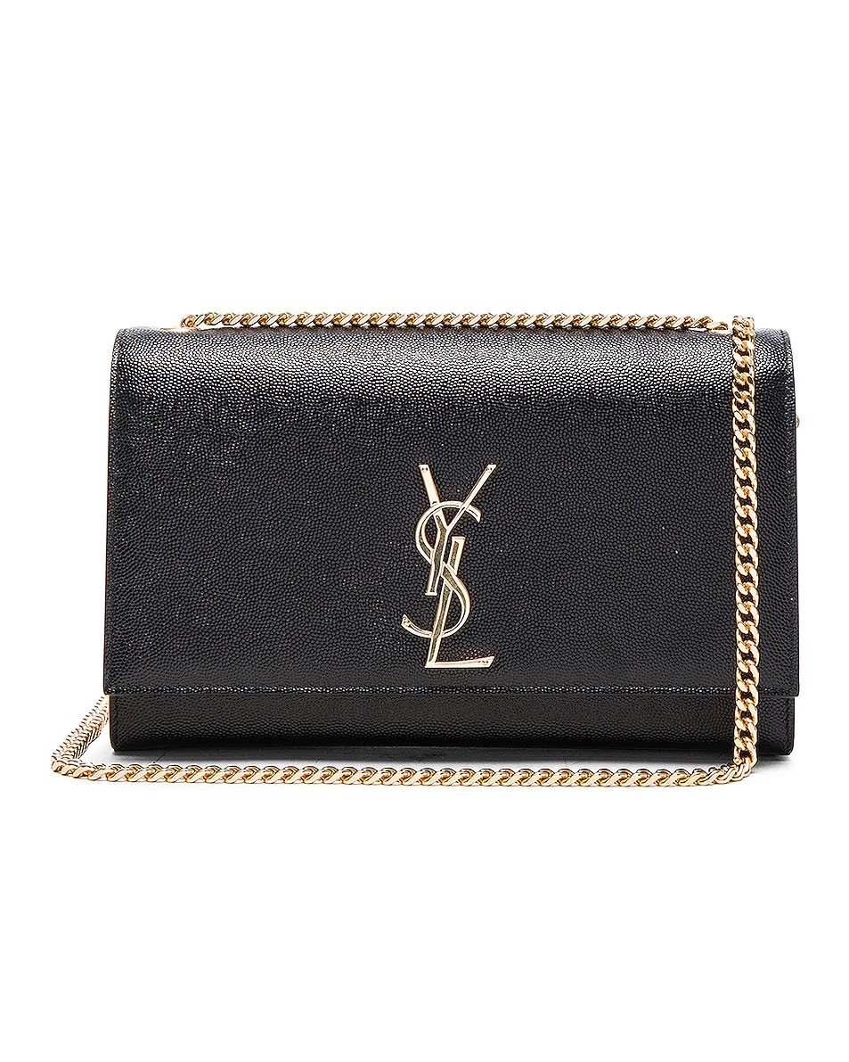 Details - Pebbled calfskin leather with grosgrain lining and gold-tone hardware - Made in Italy - Measures approx 9.5"W x 6"H x 2.25"D - Chain link shoulder strap - Fold-over flap top with magnetic button closure and metal logo accent - Interior pocket - This item is not available to ship to Indonesia - Our Style No. SLAU-WY332 - Manufacturer Style No. 364021-BOW0J-1000