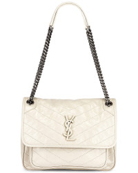 Details - Vintage crinkled calfskin leather with grosgrain lining and brushed silver-tone hardware - Made in Italy - Measures approx 10.5"W x 9"H x 3.5"D - Chain link shoulder straps with leather detail - Fold-over flap top with magnetic button closure and leather wrapped interlocking logo accent - Two interior compartments with pocket and zip pocket - Exterior back pocket with magnetic closure - This item is not available to ship to Indonesia - Our Style No. SLAU-WY817 - Manufacturer Style No. 633158-0EN04-9207