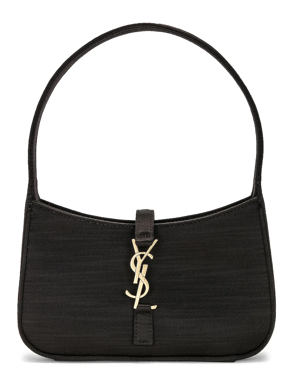 Details - Matte satin with leather lining and bronze-tone hardware - Made in Italy - Open top with interlaced YSL hook closure - One main compartment with single card slot - Measures approx 7.25" W x 4.5" H x 1.5" D - Top handle with a 5.5" drop - This item is not available to ship to Indonesia - Our Style No. SLAU-WY2283 - Manufacturer Style No. 710318-FABQY-1000