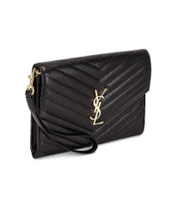 Details - Quilted leather with grosgrain lining and polished gold-tone hardware - Made in Italy - Measures approx 8"W x 6"H x 1"D - Fold-over flap top closure with magnetic fastening - Interior slot pocket - Detachable wrist strap - Interlocking logo hardware at front - This item is not available to ship to Indonesia - Our Style No. SLAU-WY1375 - Manufacturer Style No. 617662-BOW01-1000