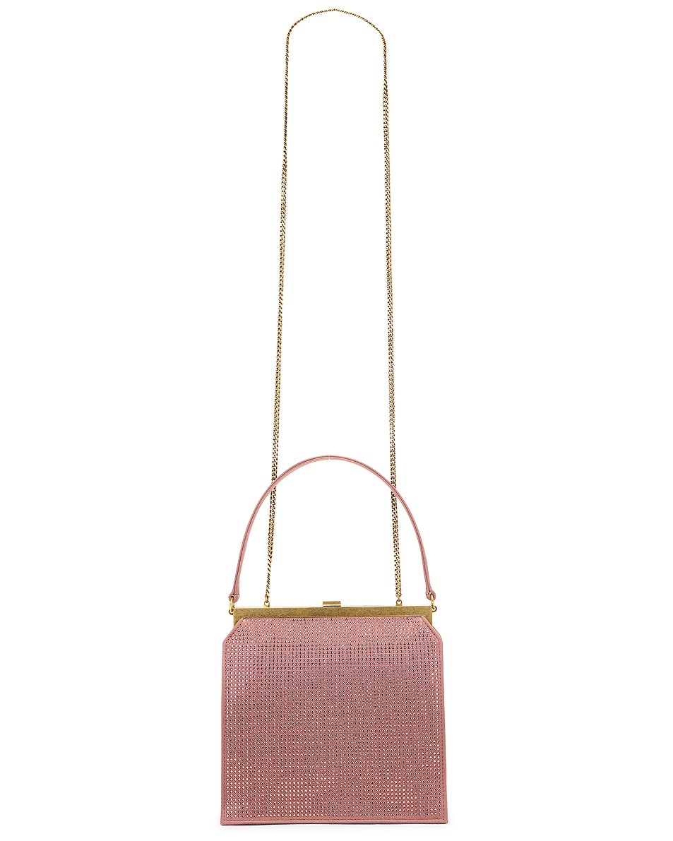 Details - Satin exterior with heat-stamped crystals, leather lining, and gold-tone hardware - Made in Italy - Square clasp closure - One main compartment with single card slot - Measures approx 17 cm W x 17 cm H x 4 cm D - Top handle with a 14 cm drop - Chainlink shoulder strap with a 52 cm drop. - This item is not available to ship to Indonesia - Our Style No. SLAU-WY2959 - Manufacturer Style No. 709969-FADXV-5745