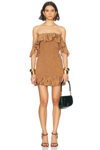 Details - 53% polyester, 47% polyamide - Made in Italy - Dry clean only - Unlined - Pull-on styling - Off-shoulder styling - Smocked crepe fabric with bubble hem - This item is not available to ship to Indonesia - Our Style No. SLAU-WD305 - Manufacturer Style No. 821229-Y3K31-2005