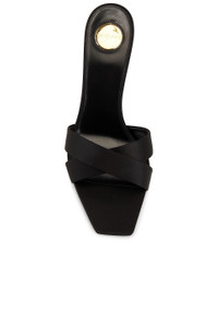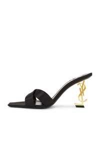 Details - Satin upper with leather sole - Made in Italy - Ankle buckle closure - Leather footbed and lining - Square toe with tonal cassandre statement heel - Approx 95mm/ 3.75 inch heel - This item is not available to ship to Indonesia - Our Style No. SLAU-WZ1350 - Manufacturer Style No. 818931-9QAB1-1000