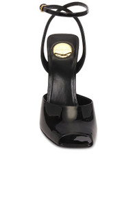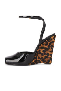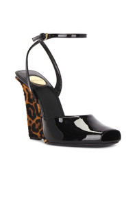 Details - Patent leather upper with leather sole - Made in Italy - Fur Origin: New Zealand - Adjustable ankle buckle closure - Leather lining - Open square toe - Dyed calf hair-coated wedge - Approx 110mm/ 4.3 inch wedge - This item is not available to ship to Indonesia - Our Style No. SLAU-WZ1335 - Manufacturer Style No. 807642-1TV00-1000