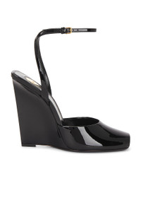 Details - Patent leather upper with leather sole - Made in Italy - Adjustable ankle buckle closure - Leather lining - Square peep toe - Approx 110mm/ 4.3 inch wedge - This item is not available to ship to Indonesia - Our Style No. SLAU-WZ1349 - Manufacturer Style No. 806039-1TV00-1000