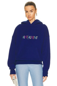 Details - Self: 100% cotton - Trim: 97% cotton, 3% elastane - Made in Italy - Hand wash - Attached hoodie - Front kangaroo pocket - Front embroidered Saint Laurent logo - Ribbed cuffs and hem - Fleece lining - This item is not available to ship to Indonesia - Our Style No. SLAU-WK91 - Manufacturer Style No. 717847-Y37CG-4274