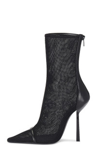 Details - Mesh upper with leather trim and leather sole - Made in Italy - Back zipper closure - Leather footbed - Silver-tone buckle detail at shaft and vamp - Pointed toe with stiletto heel - Approx 115mm/ 4.5 inch heel - Approx 180mm/ 7 inch shaft - Shaft measures approx 9.42" in circumference - This item is not available to ship to Indonesia - Our Style No. SLAU-WZ1166 - Manufacturer Style No. 763457-AACTJ-1000