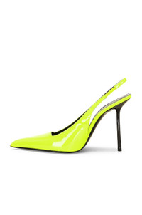 Details - Patent leather upper with leather sole - Made in Italy - Slingback styling - Leather lining - Pointed toe with pin heel - Please note shade is a neon hue - Approx 105mm/ 4.13 inch heel - This item is not available to ship to Indonesia - Our Style No. SLAU-WZ1038 - Manufacturer Style No. 731520-AABNG-7204