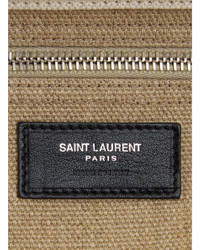 Details - Cotton linen canvas with canvas lining and silver-tone hardware - Made in Italy - with five snap button closures - One main compartment - Interior zip pocket with leather pull - "Rive Gauche Saint Laurent" printed on front - Measures approx 18.75"W x 14"H x 7"D - Leather carry handles with a 6" drop - This item is not available to ship to Indonesia - Our Style No. SLAU-MY176 - Manufacturer Style No. 509415 FAAVU