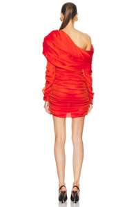 Details - 100% silk - Made in Italy - Dry clean only - Fully lined - Hidden side zipper closure - Off the shoulder design with ruched fabric - This item is not available to ship to Indonesia - Our Style No. SLAU-WD274 - Manufacturer Style No. 773944-Y3F58-6030
