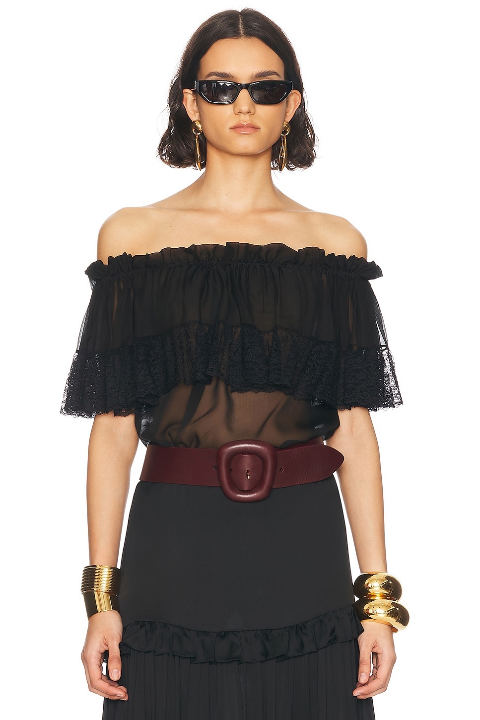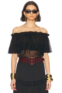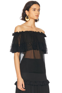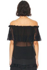 Details - 100% silk - Made in Italy - Dry clean only - Pull-on styling - Off-shoulder styling with elastic stretch - Sheer chiffon fabric with ruffle detail - Garment is made with a semi-sheer fabric, undergarments can show through - This item is not available to ship to Indonesia - Our Style No. SLAU-WS438 - Manufacturer Style No. 820509-Y115W-1000