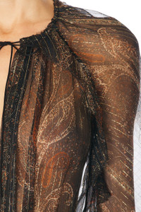 Details - Self: 95% silk, 5% metallic fibers - Lining: 100% silk - Made in Italy - Dry clean only - Partially lined - Pull-on styling - Optional front tie - Lightweight metallic chiffon fabric - Garment is intentionally sheer, undergarments will show through. - Please note undergarment not included - This item is not available to ship to Indonesia - Our Style No. SLAU-WD314 - Manufacturer Style No. 821232-Y3K61-4052