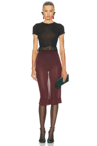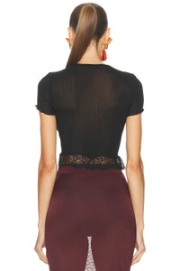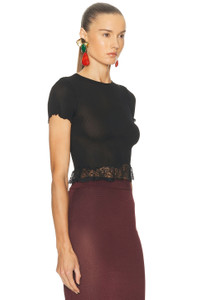 Details - Self: 100% silk - Contrast Fabric: 79% polyamide, 21% viscose - Machine wash - Pull-on styling - Ruffle lace hem - Scalloped cuff trim - Cropped fit - Lightweight ribbed jersey fabric - Garment is made with a semi-sheer fabric, undergarments can show through - This item is not available to ship to Indonesia - Made in Italy - Our Style No. SLAU-WS466 - Manufacturer Style No. 841965-Y37SM-1000