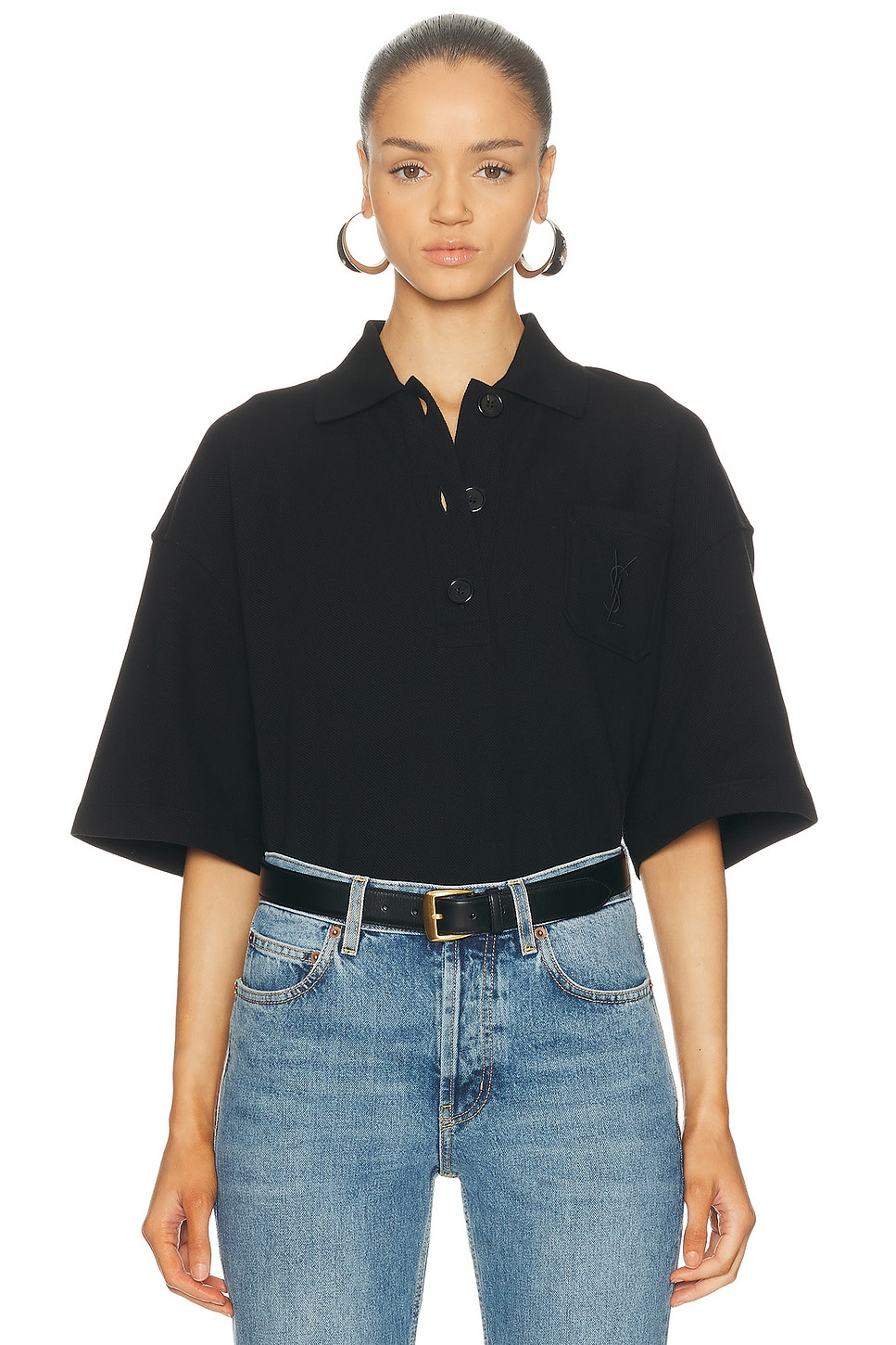 Details - Self: 100% cotton - Contrast Fabric: 100% polyester - Dry clean only - Front partial button closure - Breast slip pocket - Front tonal embroidered logo - Midweight pique fabric - This item is not available to ship to Indonesia - Made in Italy - Our Style No. SLAU-WS480 - Manufacturer Style No. 848941-Y38BN-1000