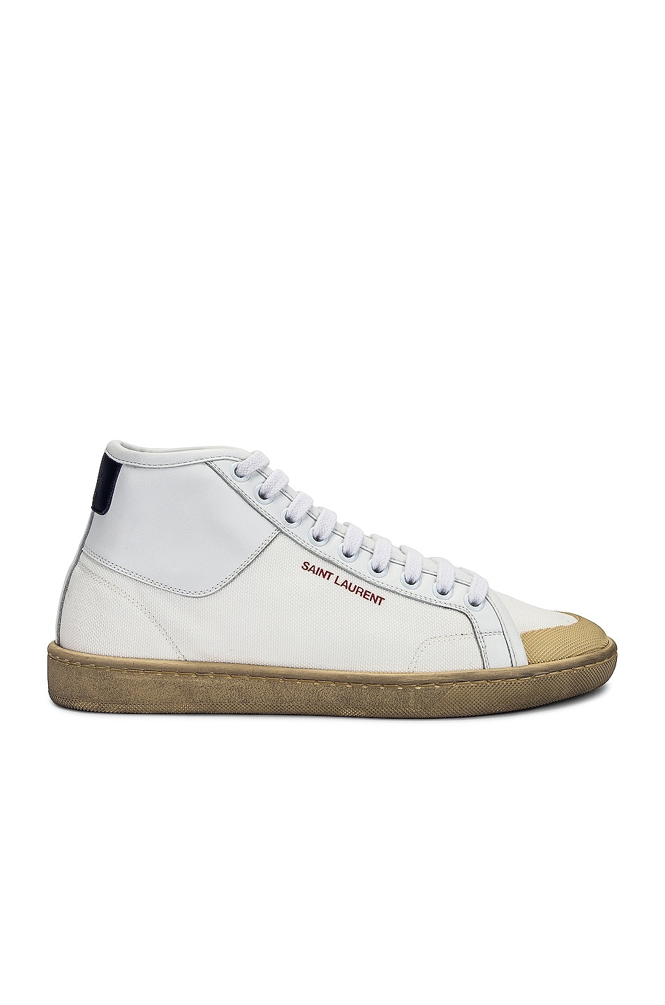 Details - Calfskin leather and textile upper with used-look rubber sole - Made in Italy - Lace-up front - Black leather at back counter with debossed logo detail - Side red Saint Laurent inscription - Intentionally marked midsole - This item is not available to ship to Indonesia - Our Style No. SLAU-WZ849 - Manufacturer Style No. 676280-12ND0-9241