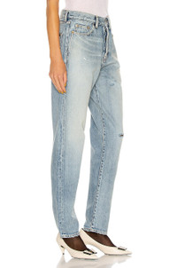 Details - 100% cotton - Made in Japan - Dry clean only - Button fly - Whiskering and fading detail along front - 5-pocket design - Distressed fabric detail on front - This item is not available to ship to Indonesia - Our Style No. SLAU-WJ33 - Manufacturer Style No. 644024 YM372