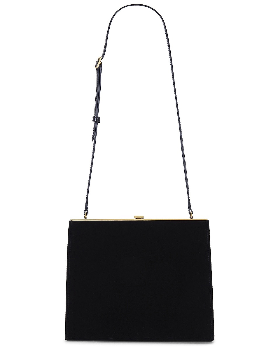 Details - Patent faux leather with embossed Saint Laurent signature exterior with faux leather lining - Made in Italy - Hinged kiss-lock closure - One main compartment - Interior slip pocket - Faux leather shoulder strap - Measures approx 18 cm W x 22 cm H x 6 cm D - Shoulder strap with a 30 cm drop - This item is not available to ship to Indonesia - Our Style No. SLAU-WY2682 - Manufacturer Style No. 762293-FACMN-1000