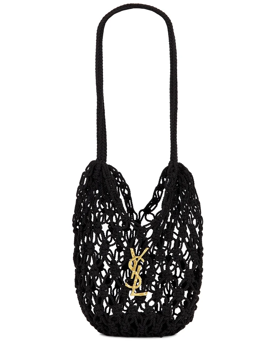 Details - Crocheted in polyester cord - Features signature YSL logo accent - Open top - Rolled shoulder straps - Features signature YSL logo - Measures approx 29 cmH x 28 cmW x 8 cmD - This item is not available to ship to Indonesia - Made in Italy - Our Style No. SLAU-WY3205 - Manufacturer Style No. 841312-GAAFU-1000