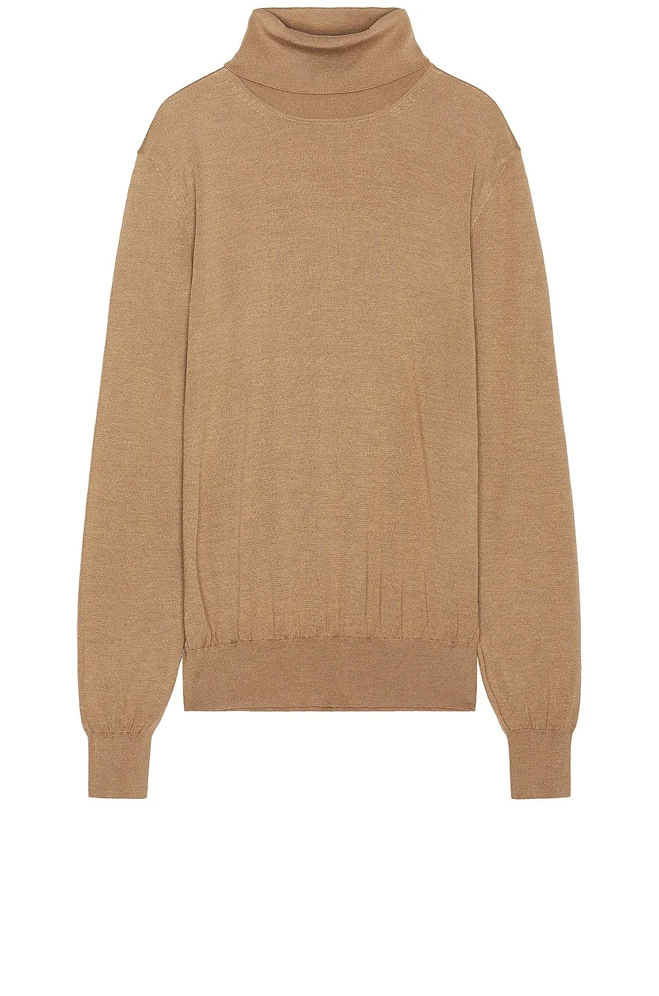 Details - Self: 35% wool, 35% cashmere, 30% silk - Collar: 33% wool, 33% cashmere, 29% silk, 3% polyamide, 2% elastane - Made in Italy - Dry clean - Turtleneck styling - Lightweight knit fabric with ribbed trim - This item is not available to ship to Indonesia - Our Style No. SLAU-MK49 - Manufacturer Style No. 752350YAPK2