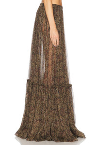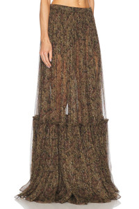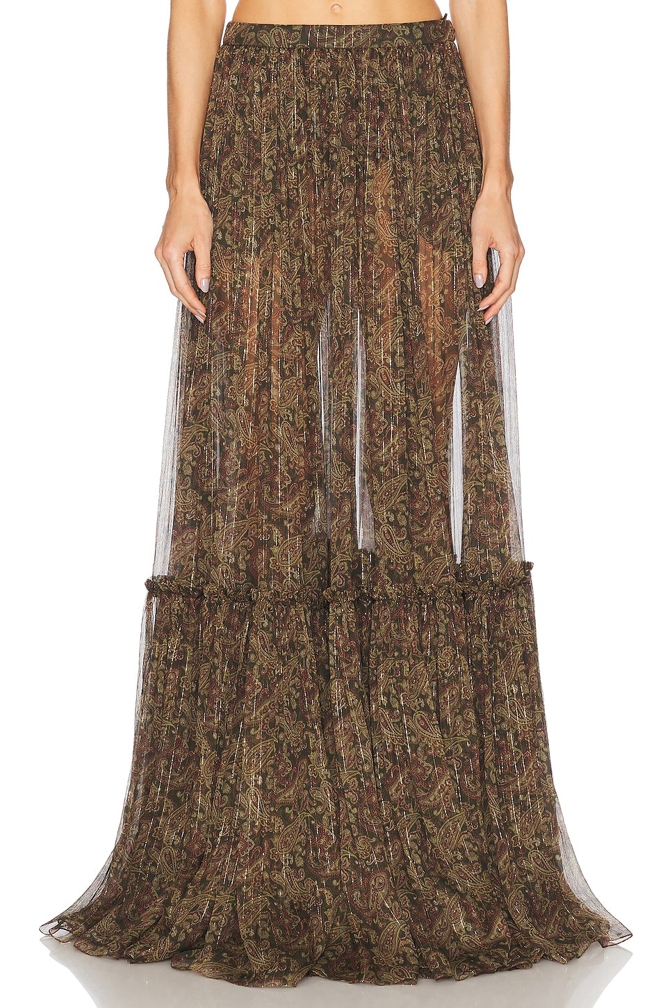 Tiered metallic paisley-print silk-blend crepon maxi skirt Green