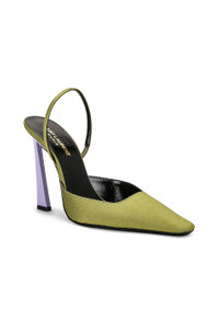 Details - Satin upper with leather sole - Made in Italy - Sling-back styling - Leather lining and footbed - Tapered toe with contrast purple flared heel - Approx 108mm/ 4.25 inch heel - This item is not available to ship to Indonesia - Our Style No. SLAU-WZ1043 - Manufacturer Style No. 736866-AABN0-3542