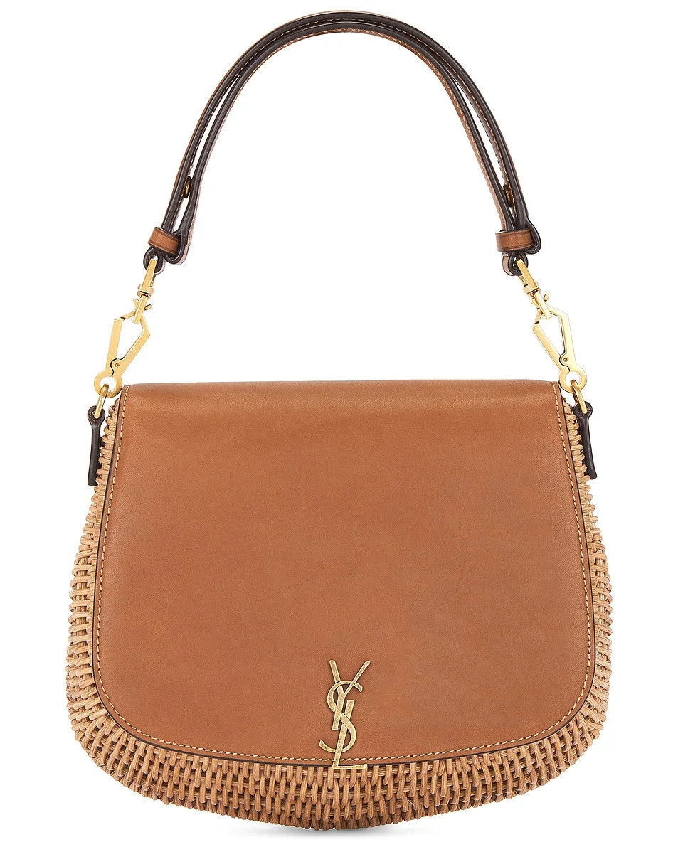 Details - Woven top-handle bag with cotton lining and bronze-tone hardware - Fold-over envelope flap top with magnetic button closure - One main comparment - One flat interior pocket - This item is not available to ship to Indonesia - Made in Italy - Our Style No. SLAU-WY3173 - Manufacturer Style No. 838062-GF03J-2080