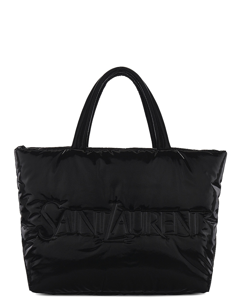 Details - Silktech canvas with leather lining - Made in Italy - Open top - One-main compartment with interior zipper pocket - Embossed Saint Laurent logo - Measures approx 41 cm W x 34 cm H x 17 cm D - Shoulder strap with a 19 cm drop - This item is not available to ship to Indonesia - Our Style No. SLAU-MY215 - Manufacturer Style No. 756269 FACY8