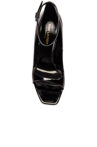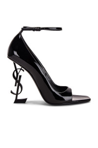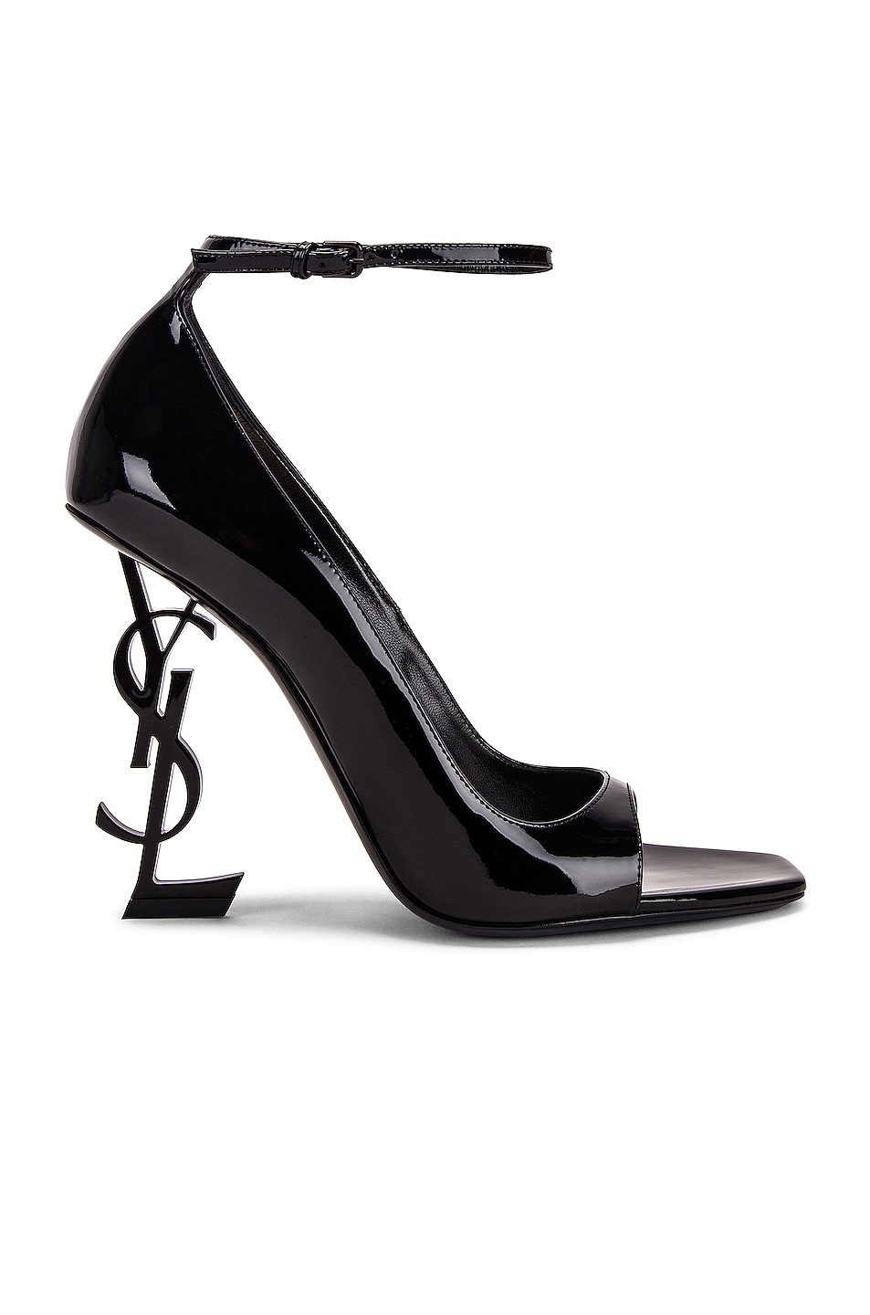 Details - Calfskin patent leather upper and sole - Made in Italy - Leather insole - Adjustable ankle strap - Structured heel decorated with tonal metal YSL initials - Square open toe - Approx 100mm/ 4 inch heel - This item is not available to ship to Indonesia - Our Style No. SLAU-WZ853 - Manufacturer Style No. 669423-1TVVV-1000