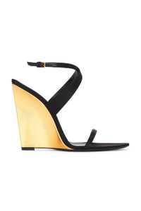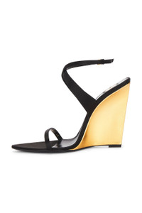 SALOMÉ WEDGES IN SATIN CREPE AND METALLIC LEATHER