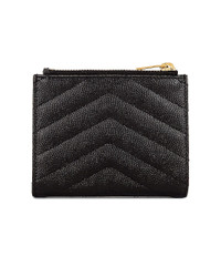 Details - Quilted metal-free tanned grain de poudre calfskin with leather lining and gold-tone hardware - Made in Italy - Bi-fold with snap button closure - Four interior card slots - One interior ID slot with mesh window - One bill compartment - Metal YSL monogram on front - Measures approx 4.25"W x 3.5"H x 0.5" - This item is not available to ship to Indonesia - Our Style No. SLAU-WY1469 - Manufacturer Style No. 575879-BOW01-1000