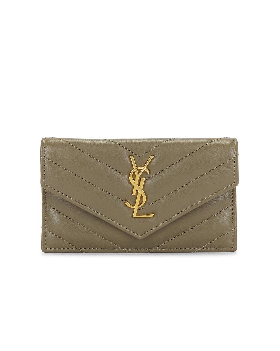 Details - Quilted leather exterior with smooth leather lining - Made in Italy - Flap top with snap button closure - Center zip pocket - Front flat pocket - 5 interior card slots - Gold-tone metal YSL cassandre on front - Measures approx 13 cm W x 8 cm H x 2 cm D - This item is not available to ship to Indonesia - Our Style No. SLAU-WY3062 - Manufacturer Style No. 612808-AAA44-3798