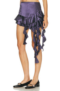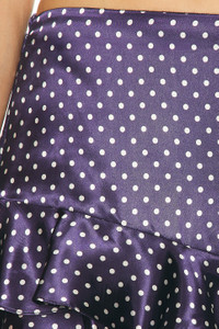 Details - 100% polyester - Dry clean - Unlined - Hidden side zipper closure - Satin fabric with ruffled hem and draped fabric overlay - Made in US - Our Style No. SLGF-WQ39 - Manufacturer Style No. F25S075-F208