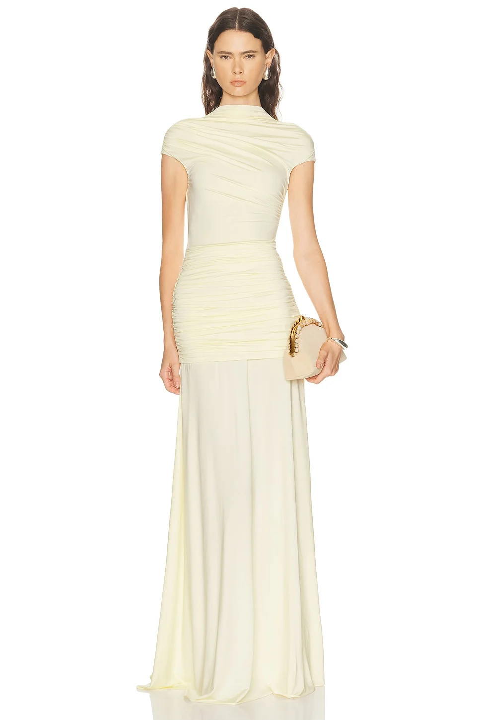 Yellow Jersey Draped Maxi Dress